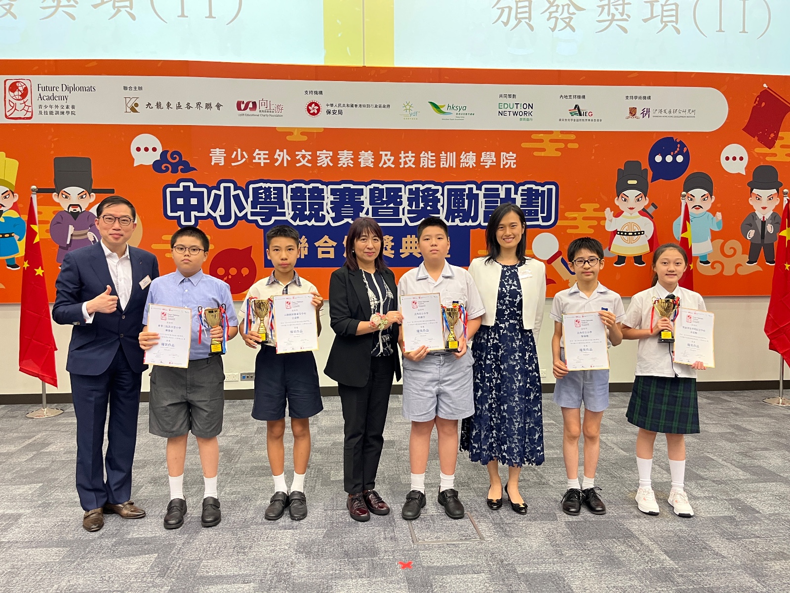 香港青年基金會(YDF)、香港青年發展聯盟(YDAHK)支持,向上游教育慈善基金與九龍東區各界聯會聯合主辦「青少年外交家素養及技能訓練學院」中小學競賽暨獎勵計劃聯合頒獎典禮今日(7月12日)喺香港中文大學李兆基樓舉行。