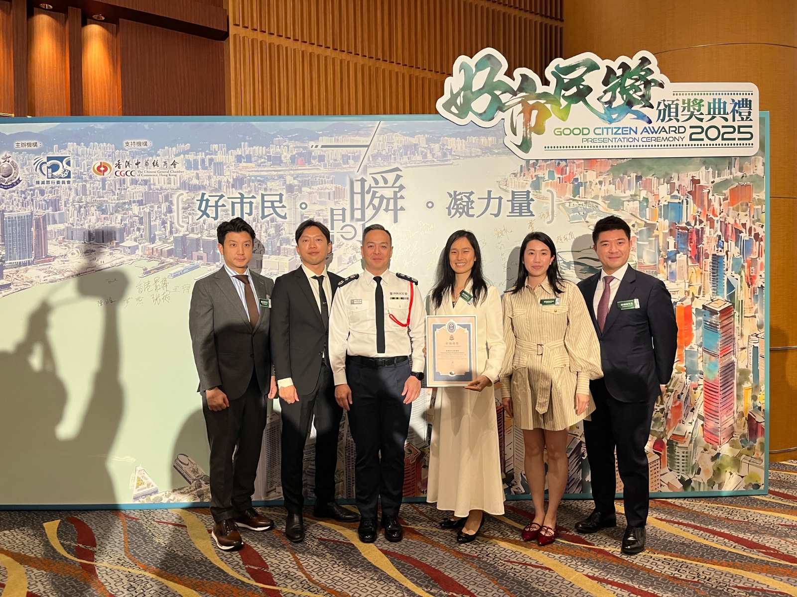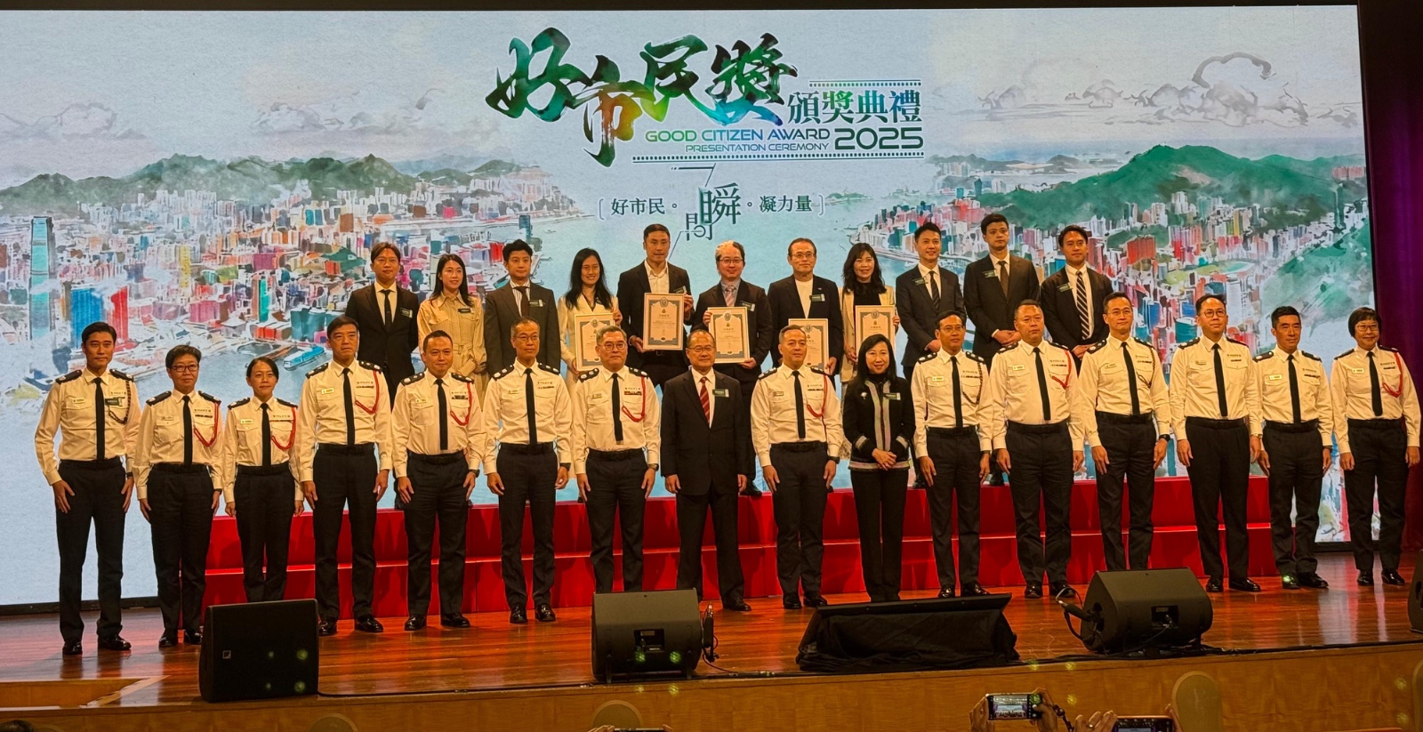 活動由警務處處長周一鳴主禮,香港青年發展聯盟(YDAHK)執行主席林文婷、輪值主席張日坤、秘書長曾寶怡、會董陳家安代表上台領獎。輪值主席梁明堅、會長林綽緯到場支持,同大家一同分享喜悅!