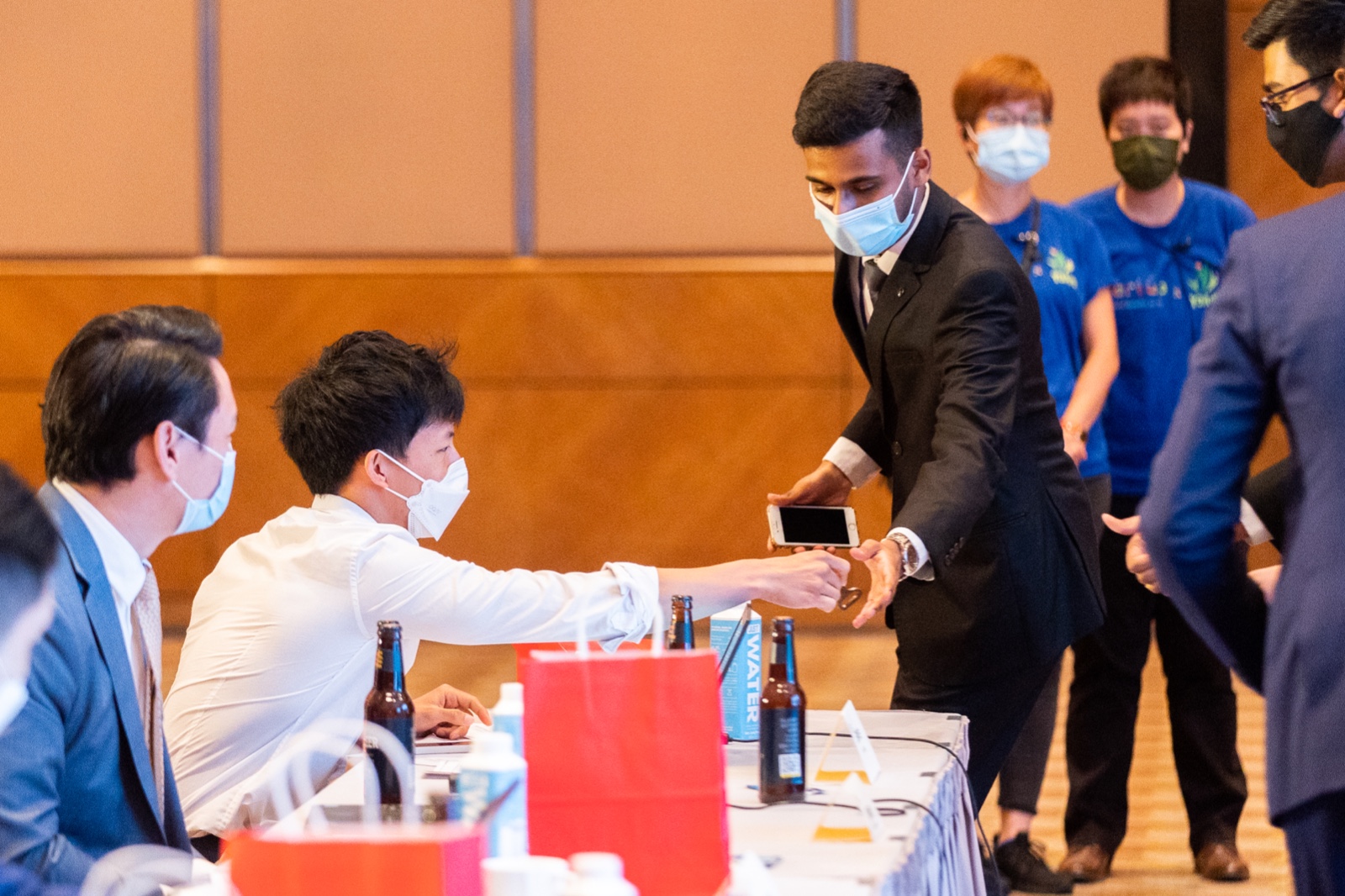 執行主席李培埡女士及創新及科技局副局長鍾偉强博士, JP仔細聆聽參賽者募投