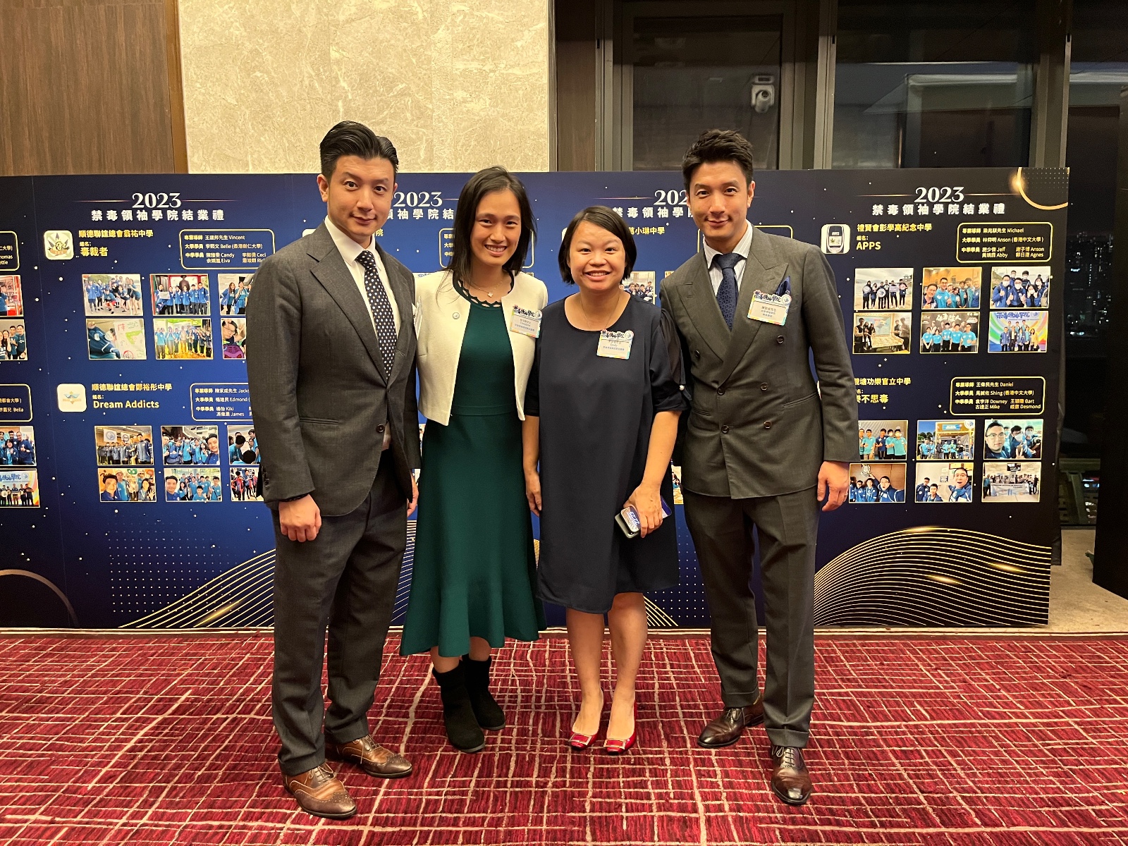 香港青年發展聯盟(YDAHK)主席李培埡、執行主席林文婷、會長陳家成、會董陳家安到場祝賀。李培埡主席係晚宴上致辭表示十分開心可以見到第二屆禁毒領袖學院計劃順利完成,亦好高興見到一班學員既成長~特別係最近係西九文化區舉行既「LOL Party」,學員們用心設計同推廣自己既禁毒攤位及創意十足無人機表演。